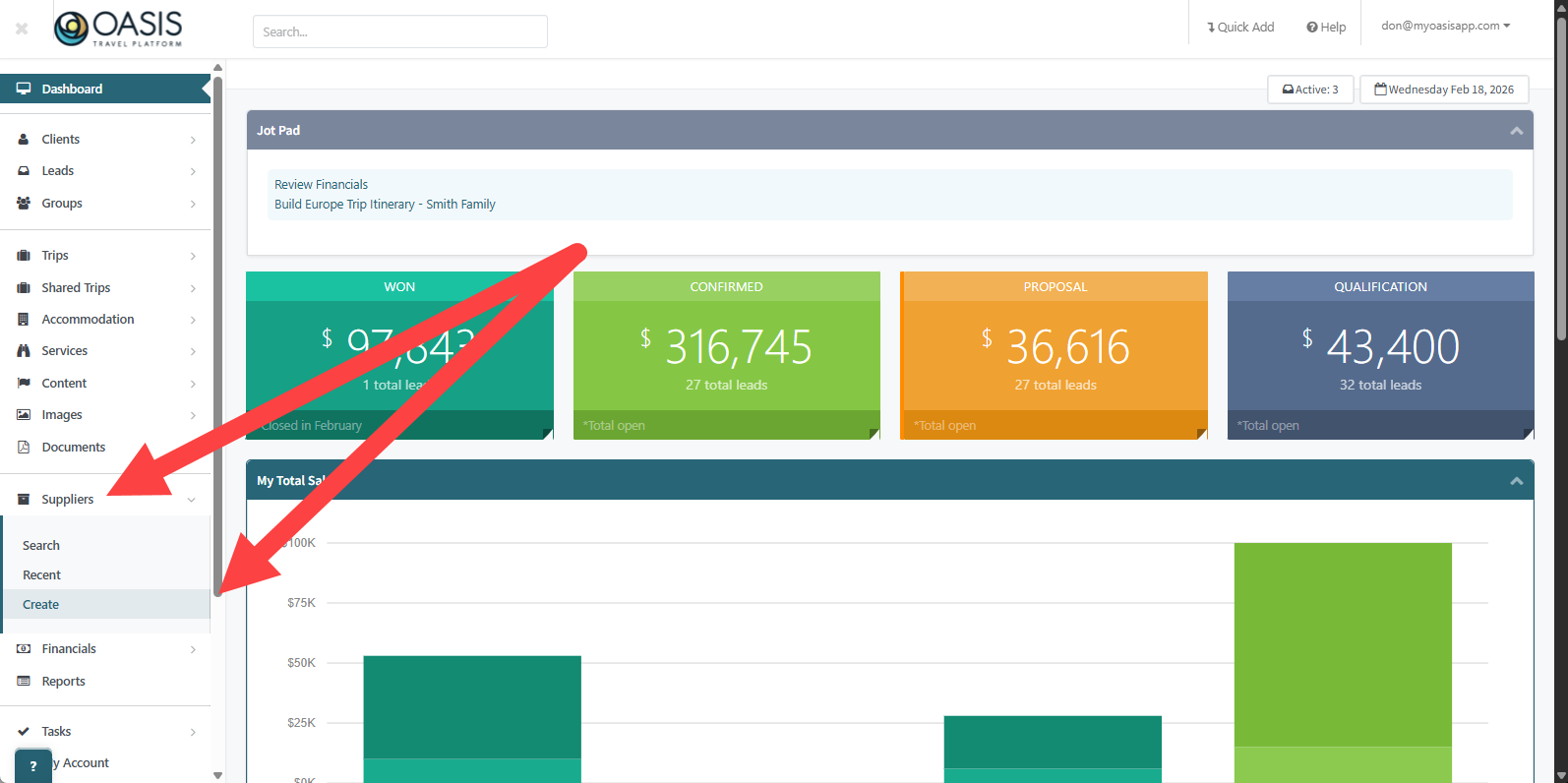 A Supplier record is the master profile for any company you work with inside Oasis. This may include a DMC, tour operator, consortium, transportation provider, cruise line, or a direct hotel partner.
